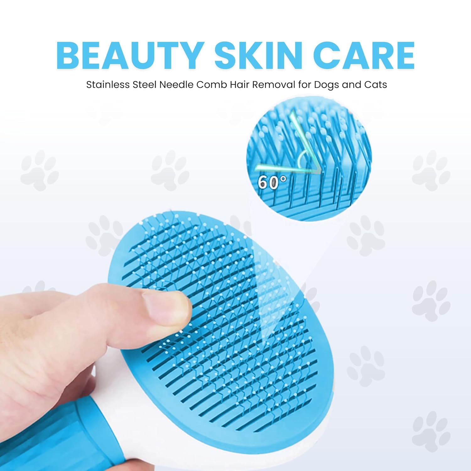 Featuring a smart self-cleaning button, this pet brush makes fur removal effortless. Simply click to retract the bristles and wipe away collected hair in seconds. The stainless steel bristles glide through the coat without hurting your pet’s skin—ideal for daily grooming and deshedding.